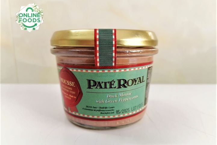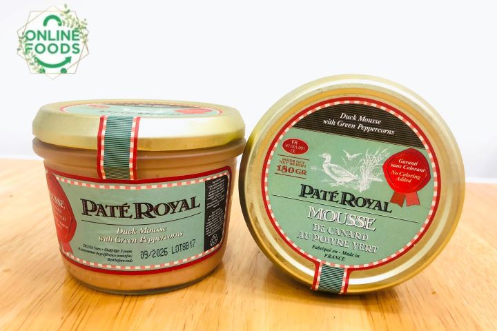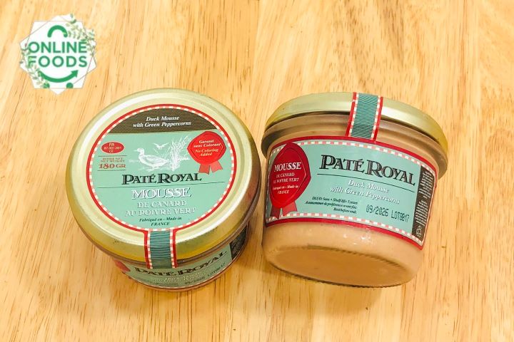 - Pate Royal Vịt Vị Tiêu Xanh (180g) được làm từ gan, thịt tươi sạch, kết hợp hoàn hảo các loại gia vị, các thành phần đều được xay nhuyễn, mịn tạo nên chất lượng pate tuyệt hảo. Không quá đắt đỏ như pate ngỗng, thế nhưng pate vịt vị tiêu xanh mang đến hương vị thơm ngon cay nồng đầy mới lạ cho món pate truyền thống thêm đậm vị. Để món ăn đạt tiêu chuẩn từ hình đến vị, đòi hỏi sự khéo léo, tỉ mỉ của người đầu bếp có nhiều năm kinh nghiệm trong nghề. Paté Royal được làm từ nguyên liệu gan nhà vịt, thịt tươi sạch, không chứa hóa chất bảo quản, đảm bảo an toàn cho người sử dụng.